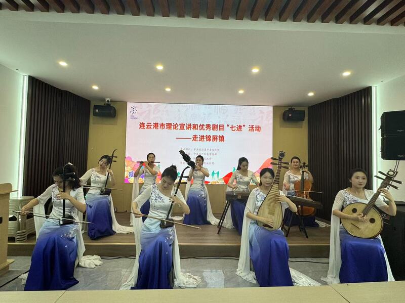 近日,連云港市理論宣講和優秀劇目“七進”海州站巡演暨2025年“茉莉花開”文藝直通車活動在錦屏鎮精彩上演。本次活動由中共連云港市委宣傳部主辦,中共海州區委宣傳部、錦屏鎮人民政府承辦,江蘇女子民族樂團傾情演出,為當地居民帶來了一場融合理論宣講與高雅藝術的惠民文化盛宴。
