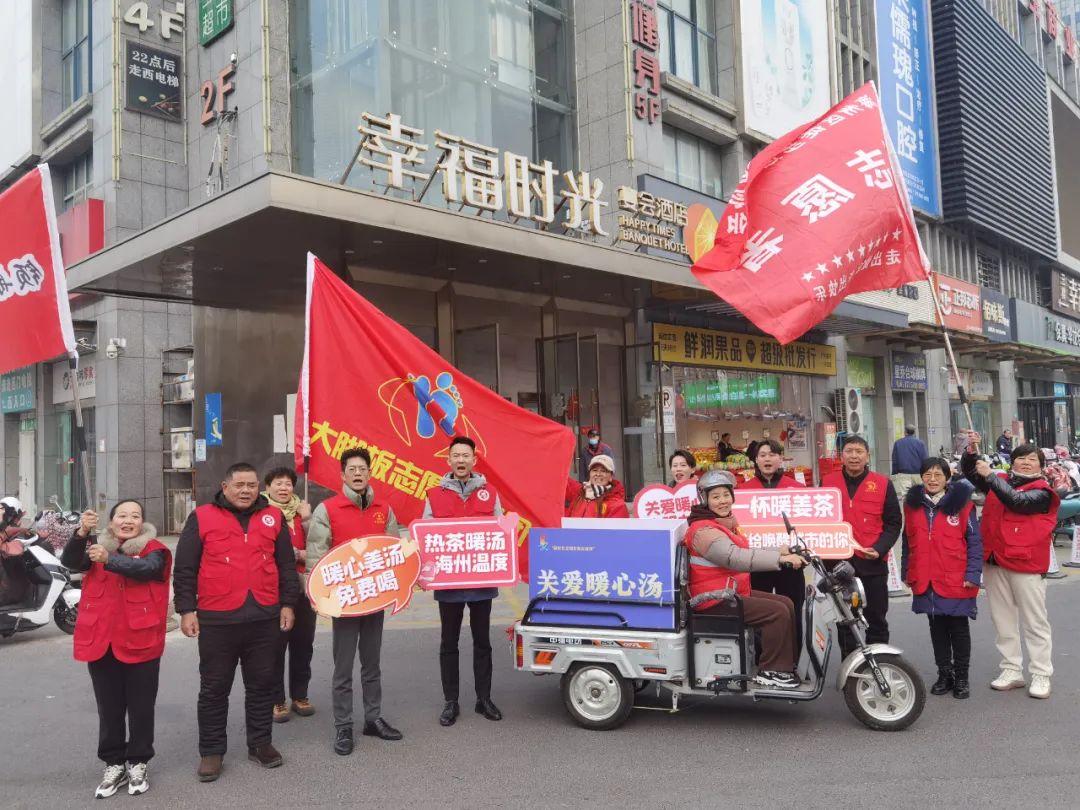 暖心姜茶關愛職工,海州冬日溫暖如春。在國際志愿者日到來之際,為踐行和弘揚“奉獻、友愛、互助、進步”的志愿服務精神,在全區營造尊重勞動者的向上氛圍。由區文明辦主辦,區文明實踐志愿服務總隊承辦,領航志愿服務隊、大腳板志愿服務團協辦的“文明實踐·溫暖秋冬—一杯姜糖茶·幸福海州味”活動隆重舉行。