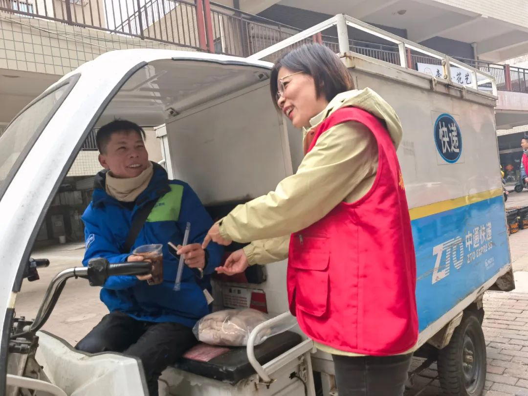 河西社區小哥驛站里,快遞小哥們正在分揀包裹。志愿者們為他們送上愛心姜茶。快遞員們手捧姜茶非常高興,表達了由衷的感謝之情。并說道雖然自己的工作辛苦勞累,但能為居民創造便利的生活條件,再苦再累也值得。
